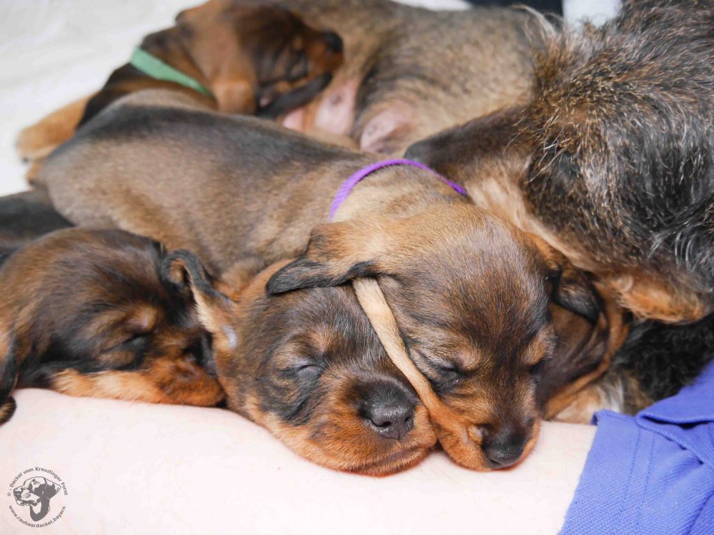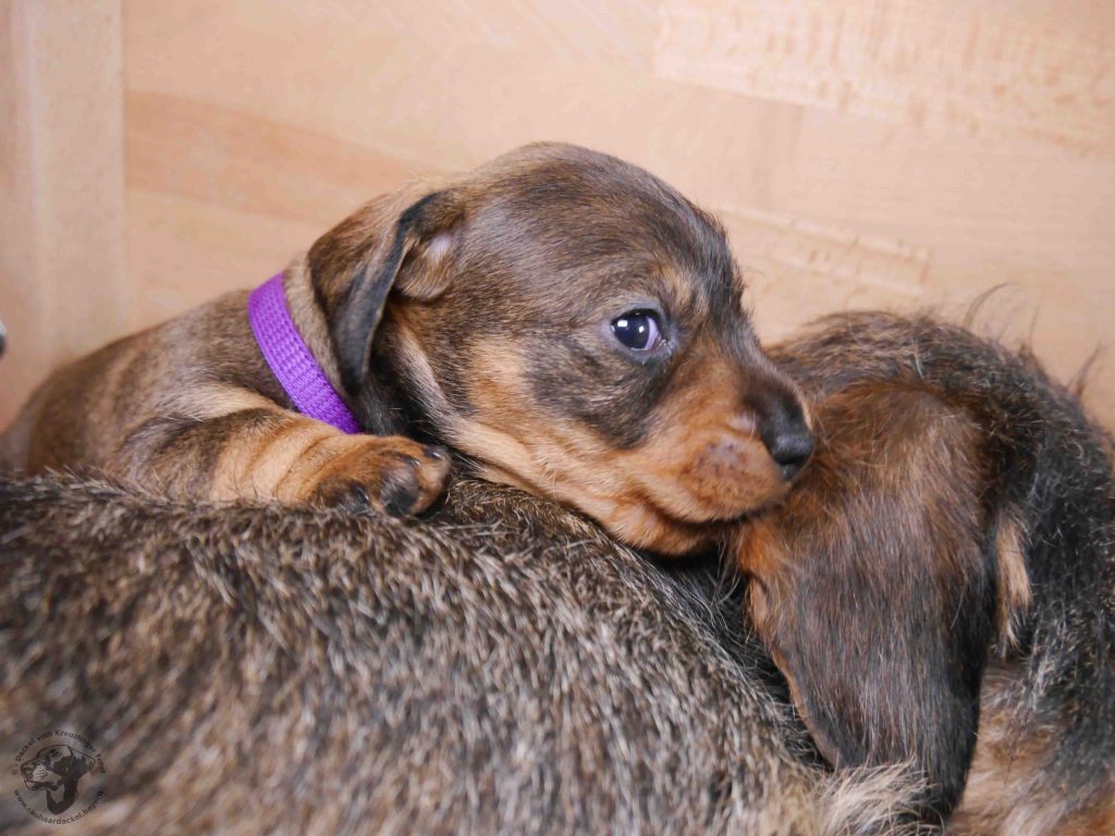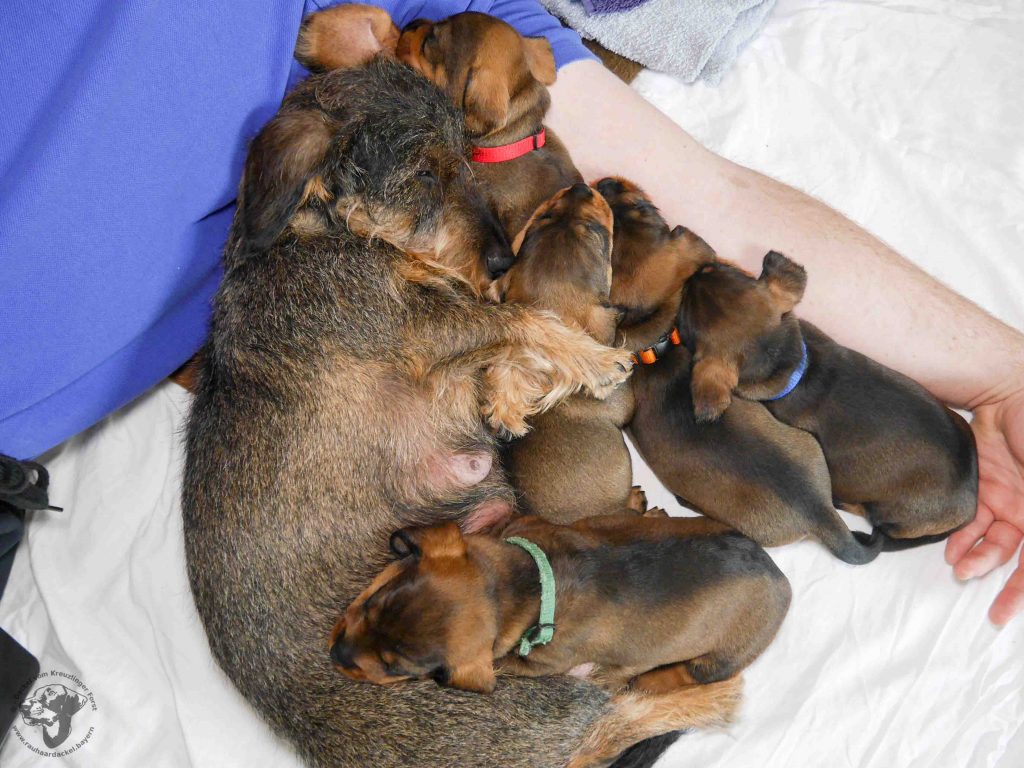 Heute war wieder ein spannender Tag für die C’s. Da schon die ersten Zähne durchbrechen, gab es heute den ersten Brei aus zu Pulver gemahlenen Welpenkroketten mit Ziegenmilch.